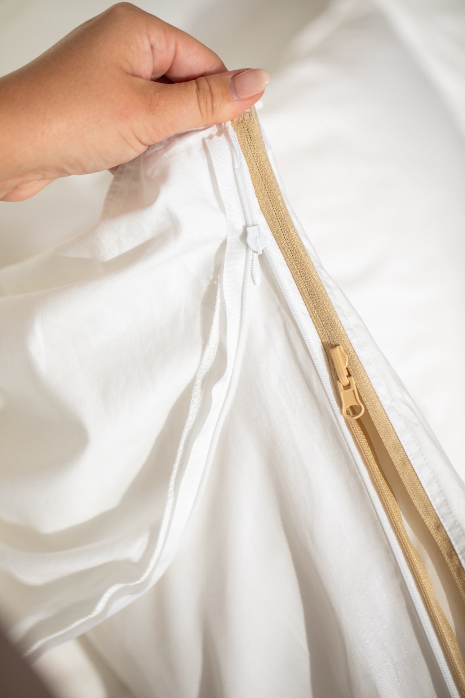 Ontdek onze unieke ritsinnovatie die je dekbed naar een hoger niveau tilt. Speciaal geselecteerde onzichtbare ritsen, ontworpen voor duurzaamheid en comfort, maken het opmaken van je bed een fluitje van een cent. Met soepele en discrete ritsen die naadloos vastzitten aan het dekbedovertrek, ervaar je een revolutie in beddengoedtechnologie.